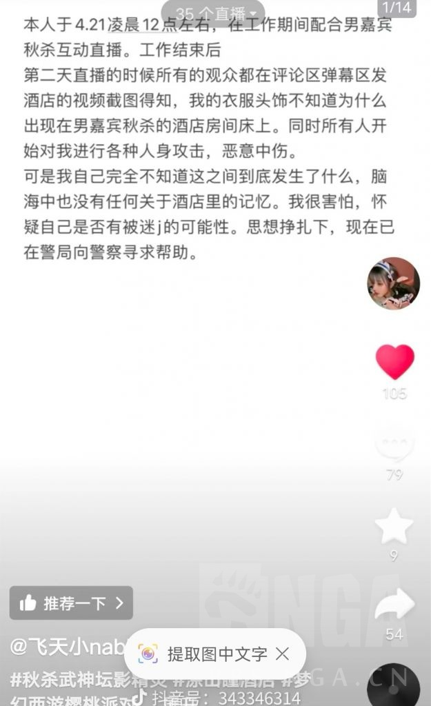 4月21日抖音微博b站百万粉丝coser小娜比,被曝陪睡梦幻西游土豪秋杀。她的个人服装和鞋子出现在土豪秋杀的酒店客房中。