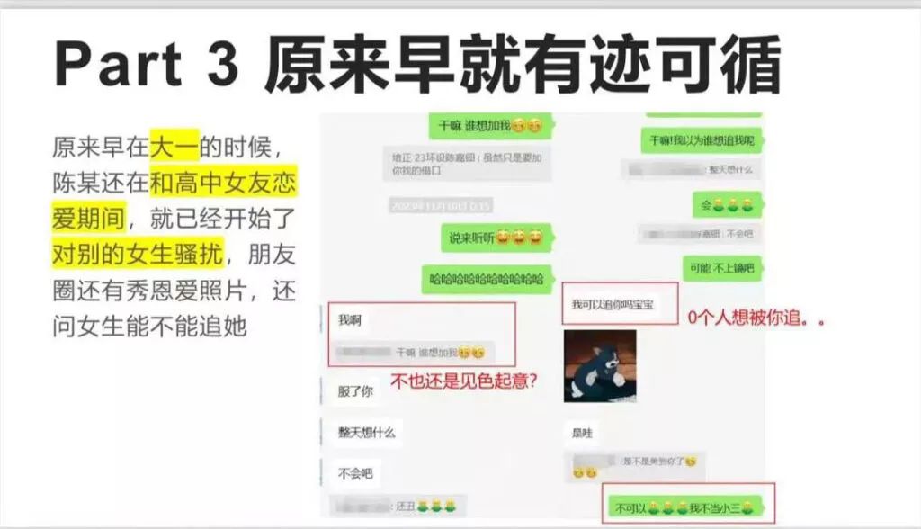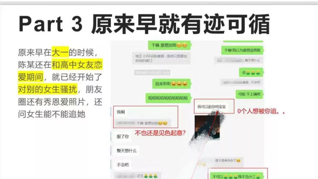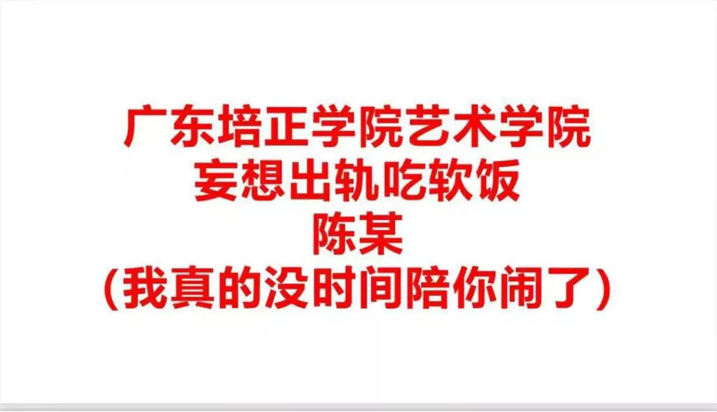 又一位时间管理大师,广东培正艺术学院除了一位软饭男,总是吃着碗里的想着锅里的,已经有了女朋友,还喜欢导出拈花惹草,被几位受害者戳穿后,那就只能是PPT曝光了。