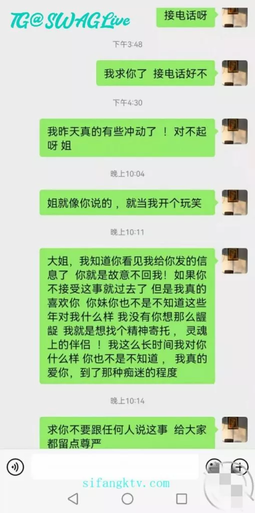 跟我大姨子表白失败以后,我是彻底后悔了,这三天我充分考虑了一下,这半年以来,不是我做的不够好,而是她心真的不在我这,正如一位兄弟说的,她是真的什么也不缺,有人Cao,有人给温暖,就我还在傻傻的为她付出!呵呵,我一遍一遍的给她打电话,发微信,昨天回我几句话,今天又没动静了,我实在憋不住了,我真的不想说这事!旁敲侧击的说了那天我看见她跟别人开房的事,