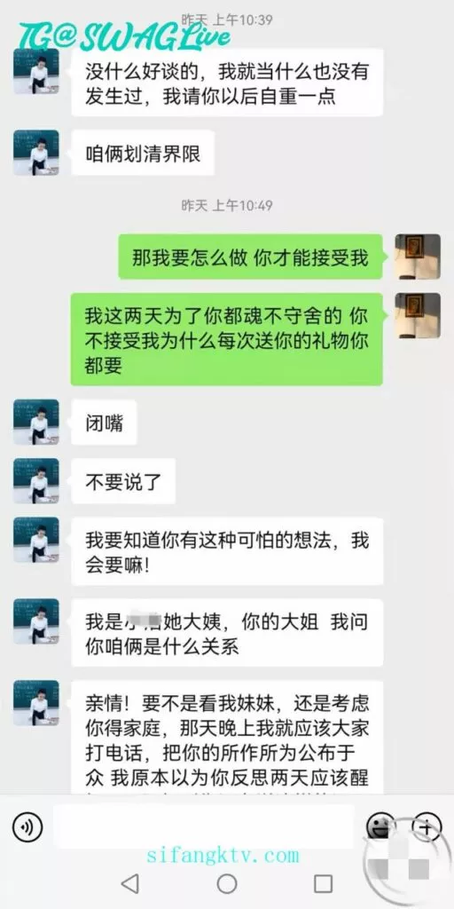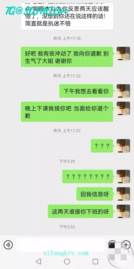 没想到回我信息那叫一个速度,先说我看错了,后说送东西,百般解释,态度还强硬。老师都是这么的盛气凌人么?昨天跟我说想给我公布于众的时候,我就怒了,想摊牌,但是想想浪迹教的理论,男人大度一些,还是算了,,我真的有些心态崩了,这半年以来pua的课程我是天天看,吸引力法则我也懂(一个男人是优秀的,优秀的,温暖的,有趣的,独立的,那这个人自然就有了吸引力)但是对于我大姨子这样的职业女性来说,我感觉什么用没有!叫她等我,就在刚刚我去找她,不接电话!不回信息!人也找不到!知道我内心有多失落么?